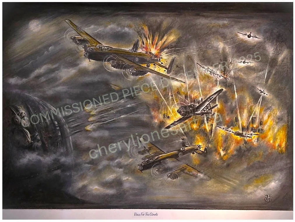 …. a commissioned artwork showing Lancasters in battle.