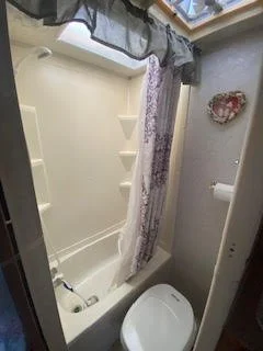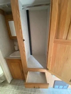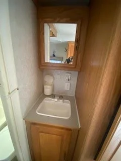 a/c, furnace, 3-burner stove/oven, large 3-way fridge, microwave, two sinks with custom-sized cover cutting board